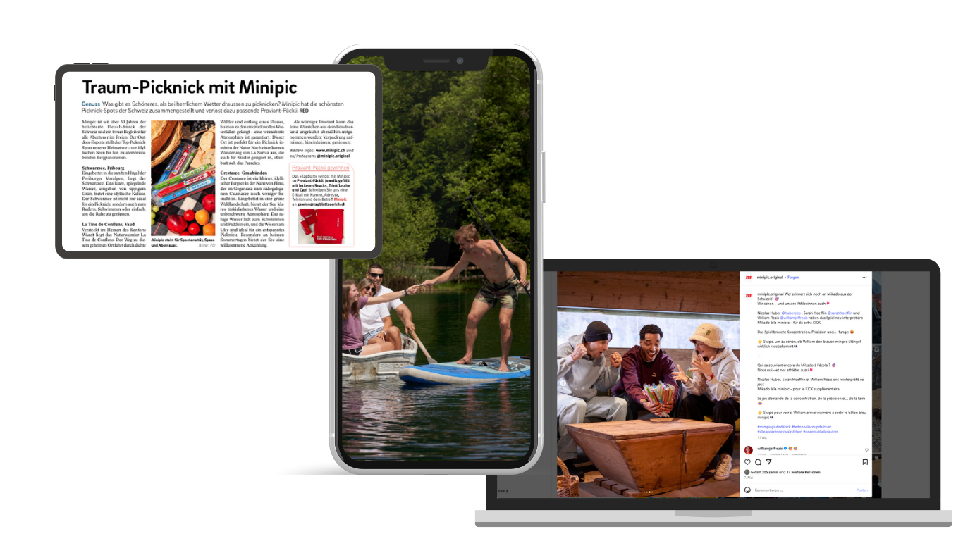 Im Jahr 2024 wurde die Kommunikation der Marke minipic neu ausgerichtet. Dafür wurde ein eigenes minipic Athleten-Team zusammengestellt. Bei der Kommunikation wollte minipic auf einen neuen Medienmix mit Fokus auf Social Media setzen. Wir durften bei der Erreichung folgender Ziele unterstützen:
